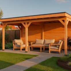 Wil je het hele jaar door genieten van het buitenleven? Dan is deze douglas overkapping van 600×300 cm een uitstekende keuze. Dankzij de extra dikke 15×15 cm staanders krijgt dit model een nog robuustere uitstraling en voelt de constructie bijzonder stabiel aan. Dit maakt de overkapping niet alleen praktisch, maar ook een luxe blikvanger in de tuin.